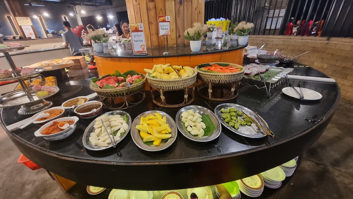 Nestled in the heart of Siem Reap at Chong Kao Sou Village, Sangkat Slor Kram, Red Crab Seafood Bbq Buffet offers a seafood experience that’s both fresh and unforgettable. From the moment you step in, the aroma of sizzling seafood fills the air, giving a hint of the delights that await. The restaurant’s spacious layout includes wheelchair-accessible seating, making it easy for everyone to enjoy a leisurely meal without hassle.